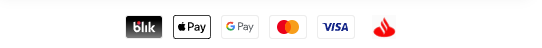 Możesz zapłacić wygodnie przez: BLIK, Apple Pay, Google Pay, LINK, Klarna, VISA, Mastercard, Maestro, PayPal, Union Pay oraz American Express.