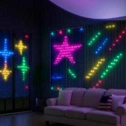 Rozświetl swoje wnętrze tysiącem kolorów i zanurz się w świątecznej aurze z GlowPlay™ – inteligentną kurtyną LED, która łączy technologię, kreatywność i emocje. Idealna do pokoju, salonu, witryny sklepowej lub tarasu – w kilka sekund zamienia zwykłą przestrzeń w magiczną scenerię świąt. GlowPlay™ to nie tylko lampki – to Twoje świetlne płótno!